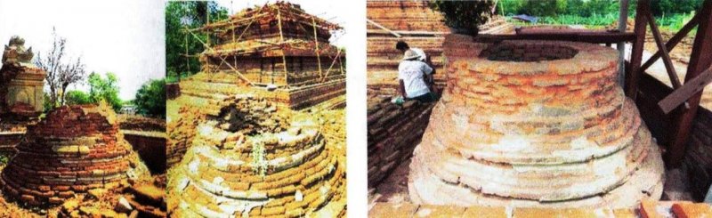 วิธีการอนุรักษ์ก็คือ ทำการบันทึกทั้งภาพถ่ายและภาพเขียน ก่อนจะรื้ออิฐโบราณออกมาคัดเกรด เลือกไว้ที่จะนำกลับไปก่อใหม่โดยกรรมวิธีเดิม แต่อาจเปลี่ยนปูนก่อเป็นสมัยใหม่เพื่อความทนทานในอนาคต ส่วนใดของโบราณสถานเคยมีปูนฉาบผิวอยู่ ก็ซ่อมเข้าไปใหม่ตามสภาพเดิม ในส่วนที่ไม่มีหลักฐานเดิมเหลืออยู่เลย ก็ต้องใช้วิธีการสันนิษฐาน โดยนำโบราณสถานชนิดเดียวกัน ในยุคเดียวกันมาเปรียบเทียบ แล้วกำหนดแบบ ก่อสร้างเสร็จแล้วให้คนยุคหลังรู้ชัดๆว่าส่วนใดเป็นการก่อสร้างสมัยไหน แต่ตรงนี้ผู้รู้จริงระบุไม่ได้หรอกครับว่า ส่วนที่บูรณะขึ้นมาใหม่นั้นจะผิดหรือถูกต้องตรงกันกับของจริงๆในอดีต จะมีก็แต่นักวิจารณ์เท่านั้นที่จะแสดงภูมิรู้ (ขอโทษนะครับ ประโยคหลังนี้ไม่ได้ว่าคุณพีรศรี)
