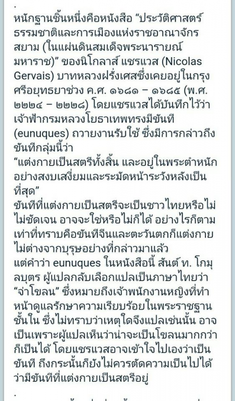 หลักฐานข้างบนนี้ ทำให้เห็นว่าขันที หรือที่เรียกว่า Eunuch(อ่านว่ายูนุค) มีอยู่จริงในราชสำนักอยุธยา    แต่งกายแบบเพศชาย