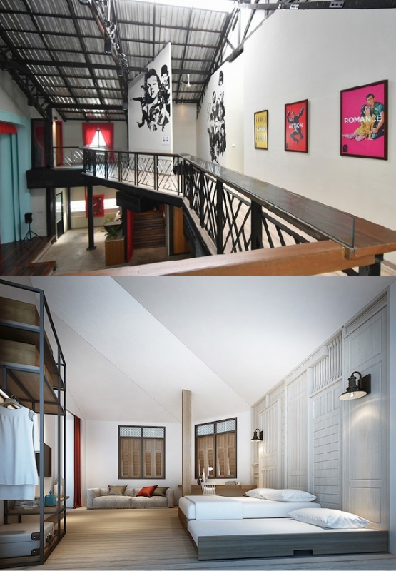 รวมถึงจอภาพยนตร์ก็ยังคงเก็บไว้และมีการปรับปรุงพื้นที่ด้านหน้าจอให้เป็นเวทีสำหรับการแสดง ส่วนวัสดุ ที่ยังมั่นคงแข็งแรงก็นำมาดัดแปลงใหม่ให้เข้ากับคอนเซ็ปต์โรงแรม