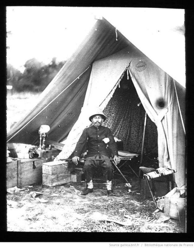 รูปหลวงพิศณุเทพ ถ่ายที่หน้าเต๊นท์ของปาวี ร.ศ. ๑๐๘