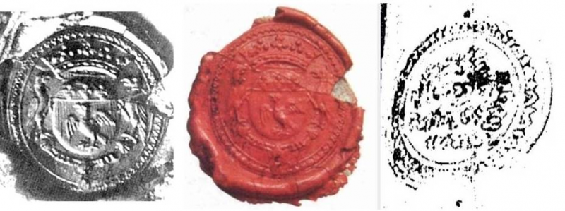 มีข้อสังเกตอย่างหนึ่งคือ ตราประทับของฟอลคอนทั้งบนครั่งและบนกระดาษเหมือนกันอยู่อย่างหนึ่งคือขอบตราด้านนอกสุดมีลวดลายคล้าย ๆ กัน