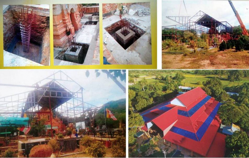 เมื่อหลังคาที่ทำไว้ชั่วคราวหมดอายุ และผู้อนุมัติงบประมาณเห็นคุณค่าของโบราณสถานที่เผยโฉม อาจารย์วินหม่องจึงได้หลังคาที่ถาวรมาคลุมพื้นที่อนุรักษ์ทั้งหมด