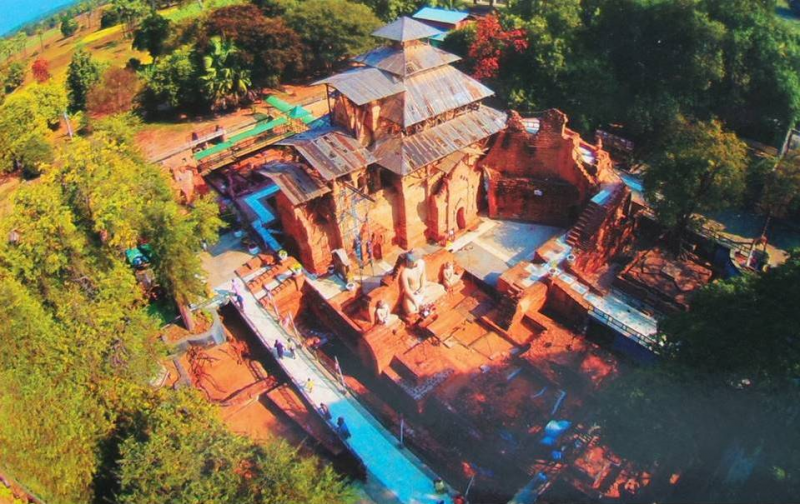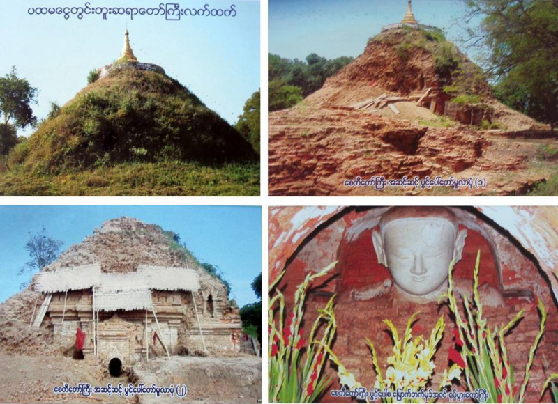 เจ้าอาวาสได้ขอแรงชาวบ้านให้ระดมพลมาเก็บกวาดซากอิฐออก จึงพบว่ามันคือทรากโบราณสถานที่เก่าแก่มากที่ถูกหมกอยู่ หลังจากหนึ่งปีที่พยายามขุดคุ้ย ท่านก็ได้พบช่องทางที่จะเข้าไปได้ทางด้านทิศเหนือ เมื่อเข้าไปแล้วก็ได้พบส่วนพระพักตร์ของพระพุทธรูปสมัยพุกามขนาดใหญ่องค์หนึ่ง จึงรีบแจ้งให้ทางการของรัฐบาลเมียนมาร์ทราบ