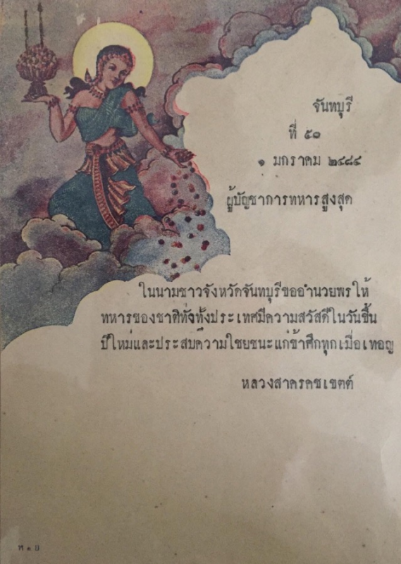 ๒๔ ธันวาคม พ.ศ. ๒๔๘๓ จอมพล ป.พิบูลสงคราม ประกาศให้ใช้วันที่ ๑ มกราคม เป็นวันขึ้นปีใหม่ แทนวันที่ ๑ เมษายน เพื่อให้เป็นไปตาม "นานาอารยประเทศทั้งปวง" ดังนั้นปี พ.ศ. ๒๔๘๓ ประเทศไทยจึงมีเพียง ๙ เดือน  ๑ มกราคม พ.ศ. ๒๔๘๔ หลวงสาครคชเขตต์ (ประทวน สาคริกานนท์)ในนามตัวแทนของชาวจันทบุรี ก็ได้ส่งบัตรอวยพรถึงจอมพล ป. ที่เพิ่งได้รับการแต่งตั้งเป็นผู้บัญชาการทหารสูงสุด ในการสงครามกรณีพิพาทอินโดจีน ที่ไทยได้เปรียบฝรั่งเศสในการรบ ก่อนญี่ปุ่นจะเข้ามาช่วยไกล่เกลี่ย https://www.facebook.com/508693749269823/posts/999110486894811/