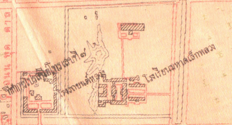 ในแผนที่ของคุณหนุ่มสยามระบุว่าจัดทำในปี ๒๔๕๓ เช่นเดียวกันนั้น ถึงสมัยก่อนจะเปลี่ยนศักราชใหม่ในกลางเดือนเมษายน  แต่อาคารชั่วคราวของโรงเรียนยังไม่น่าจะสร้างเสร็จ  ผังโรงเรียนในแผนที่น่าจะจำลองมาจากแบบร่าง  ซึ่งเมื่อสร้างจริงก็มีการแก้ไขเปลี่ยนแปลงอีกเล้กน้อย