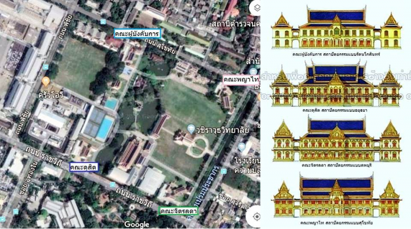 จากข้างบนจะเป็นว่าคณะดุสิตอยู่ใกล้นิดเดียวจากสนามหลัง อันเป็นที่รัฐบาลมาตั้งโรงไฟฟ้าชั่วคราว ทำให้โรงเรียนต้องประสบความเสียหาย