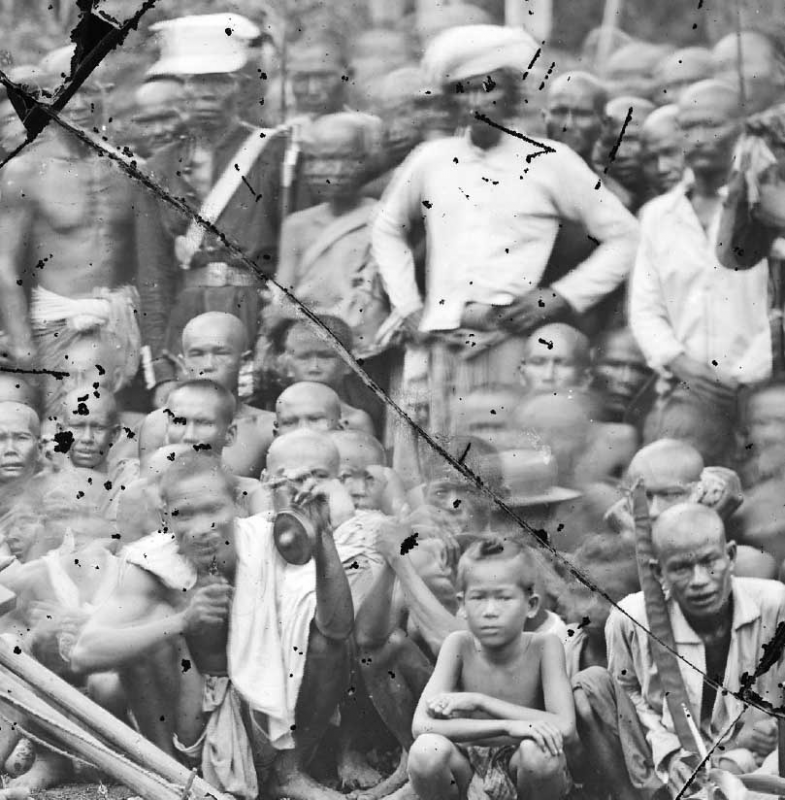 ภาพในช่วงระหว่างพระบรมศพรัชกาลที่ ๔ ประดิษฐานในพระที่นั่งดุสิตฯ ชาวสยามต่างโกนผมไว้ทุกข์ ยกเว้นเด็กที่ยังไม่โกนจุกไม่ต้องโกนหัว
