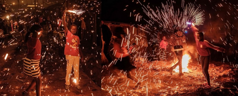 Kenya เด็กๆ ฉลองตามมี,จุดดอกไม้ไฟสาดใส่กันบนถนนในย่านสลัมของ Nairobi