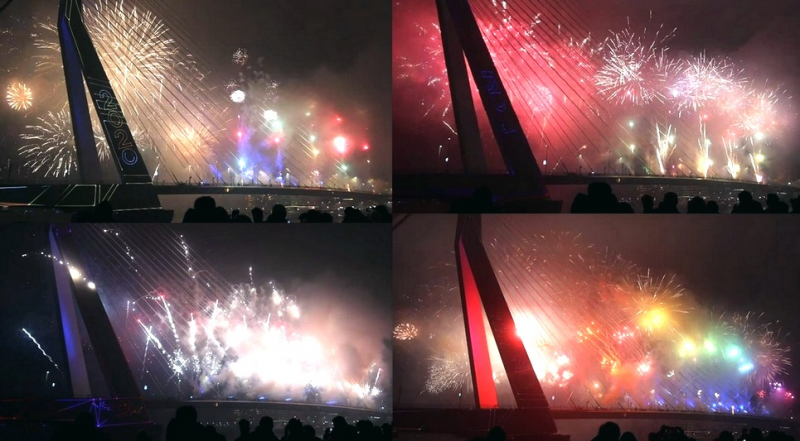 Ivory Coast พลุที่สะพาน General de Gaulle bridge ข้ามทะเลใน Ebrie lagoon ที่เมืองหลวง Abidjan