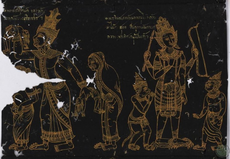 ๏ พระอินศวรทร้างมหาธนูโมลิด้วยลำไม้ศรีสุกขซึ่งศุกขวัฒนดาบศถวายพระอิศวรผู้เปนเจ้า ๚