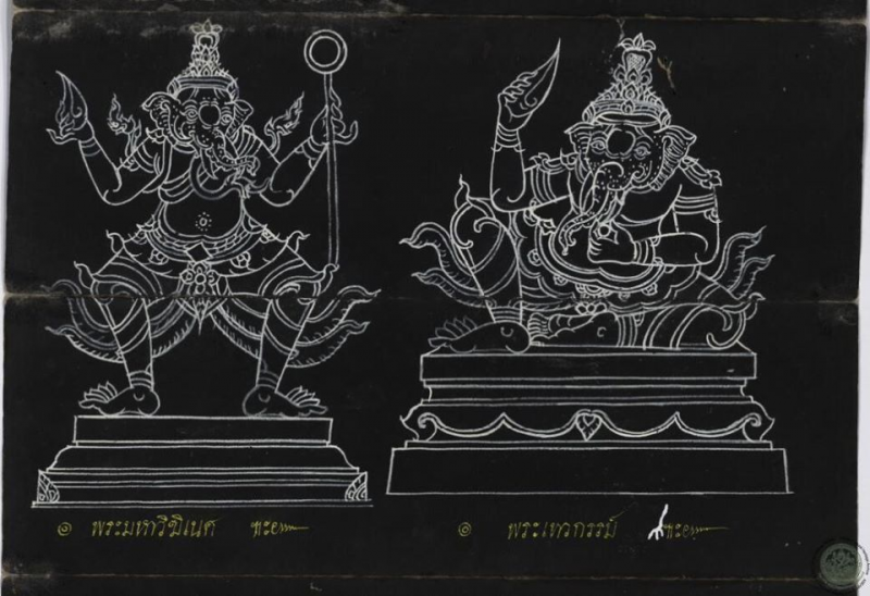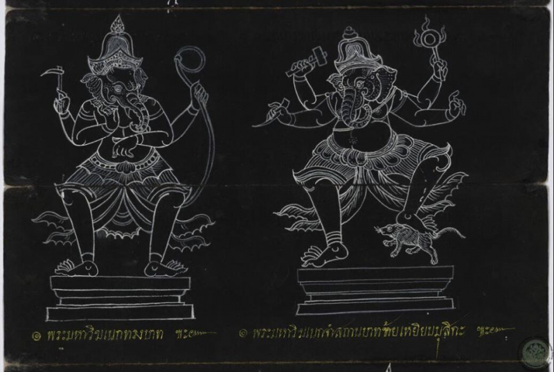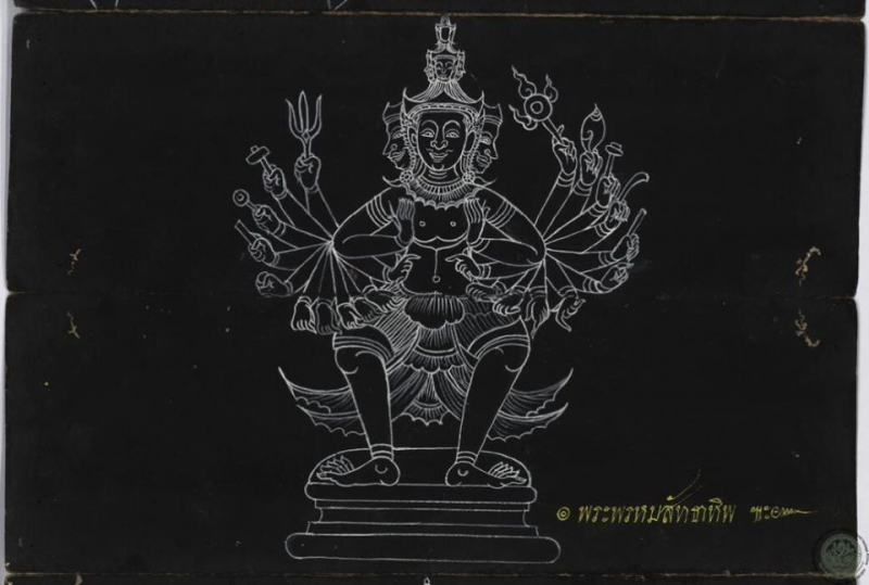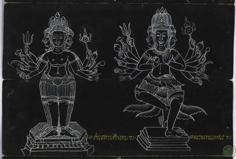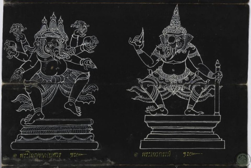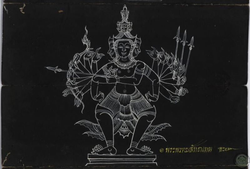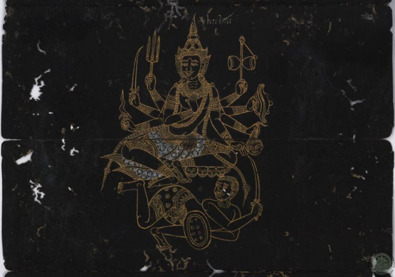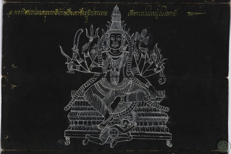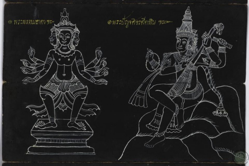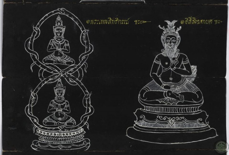 พระสมุดรูปพระไสยศาสตร์หรือเทวรูป (พระสมุทรูปพระไสยสาสตร์) เลขที่ ๓๓ สมุดไทยดำ เขียนด้วยเส้นขาว อักษรบรรยายเขียนด้วยเส้นหรดาล หอพระสมุดวชิรญาณซื้อจากนายขีด นาคเทวิน วันที่ ๑๔ กรกฎาคม พ.ศ. ๒๔๘๑