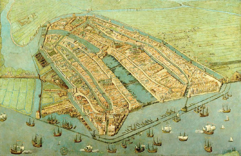 A 1538 painting by Cornelis Anthonisz showing a bird's-eye view of Amsterdam