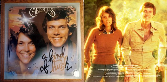 Package ของ album ชื่อ A kind of hush นี้สวยทีเดียว แต่ไม่เป็นแบบ gatefold ด้านหนึ่งของซองในใส่แผ่น ฯ เป็นเนื้อเพลง อีกด้านเป็นรูปของ 2 พี่น้อง Richard Carpenter หล่อไม่เบา ถ้าไถผมด้านข้างออก หน้าเธอจะหล่อมาก (ใครทำให้วะ น่าด่าจริง ๆ) ผมเริ่มเห็นความหล่อของเธอมาตั้งแต่ปก album ก่อนนี้คือ Horizon ที่มีเพลงดัง Please Mr. Postman