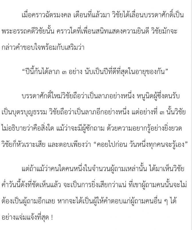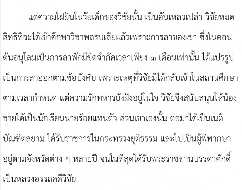 จนถึงกลาง ๆ เรื่อง ตอนที่ 15 นิยายก็ระบุว่า วิชัยได้รับโปรดเกล้าฯ เลื่อนบรรดาศักดิ์เป็นคุณพระอรรถคดีวิชัย ในคราวพระราชพิธีฉัตรมงคล