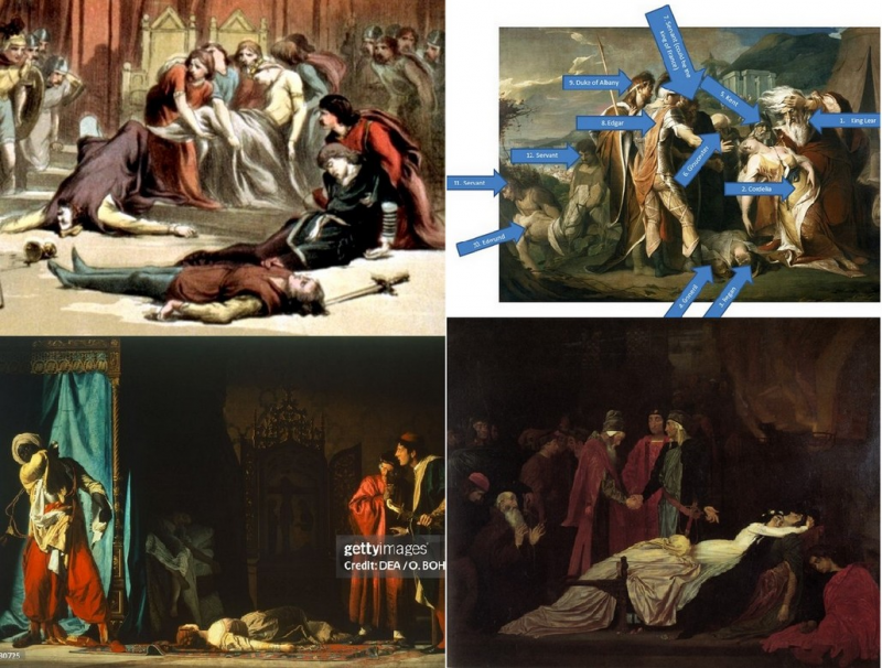 ภาพมรณกรรมหมู่ ๔ เรื่อง (ไม่มี แมคเบธ ซึ่งต่อสู้, โดนสังหาร แล้วยังถูกบั่นคอ)
