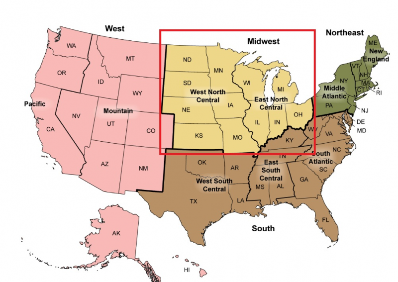 ที่ตั้งของแถบมิดเวสต์ MN คืออักษรย่อของรัฐมินนิโซตา